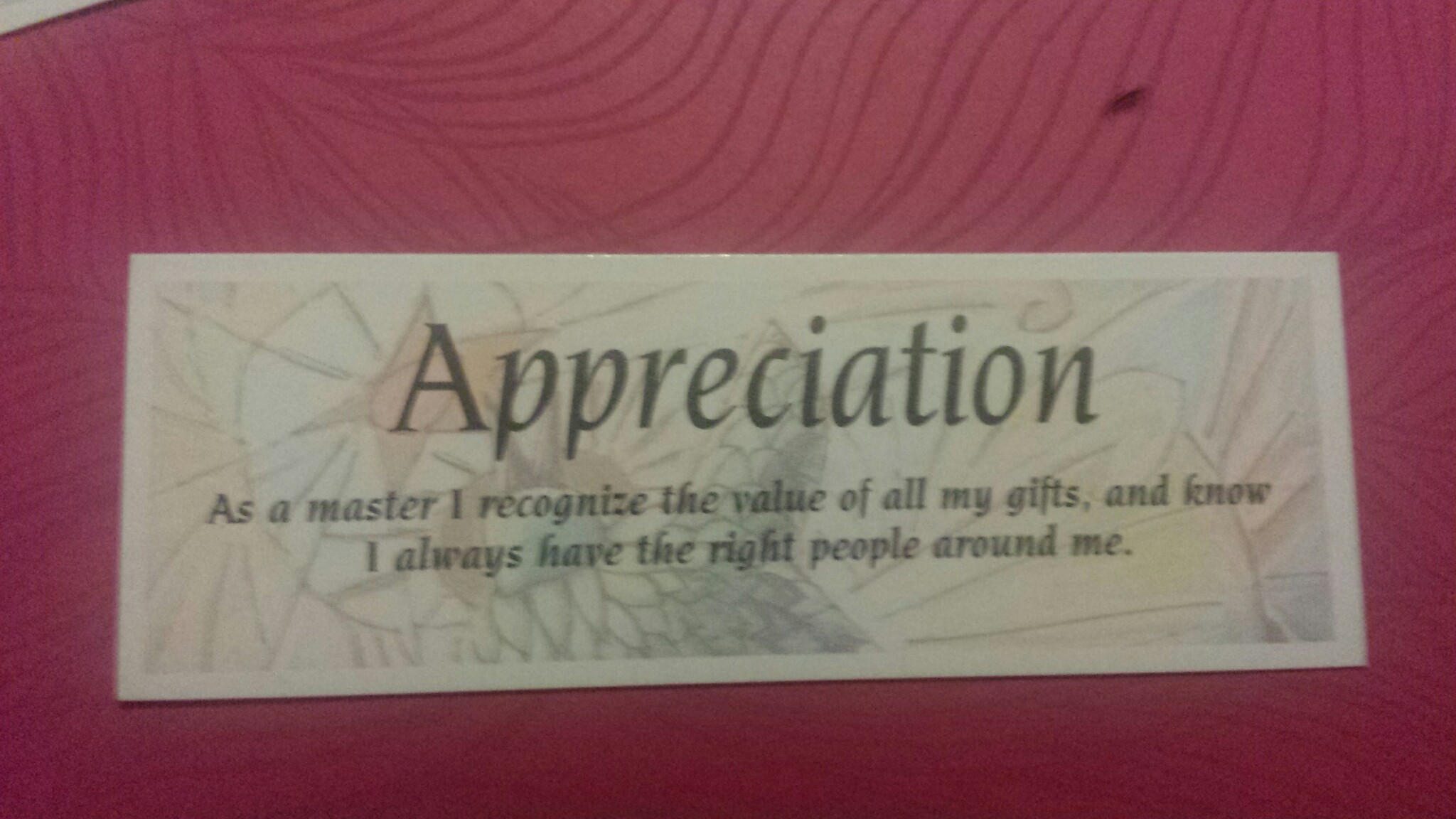20151023_070337 Published on November 2, 2015 in Brahma Kumaris Self-Mastery Affirmations–Take what you need <3Full resolution (2048 × 1152) ← Previous Next → As a master I recognize the value of all my gifts, and know I always have the right people around me.
